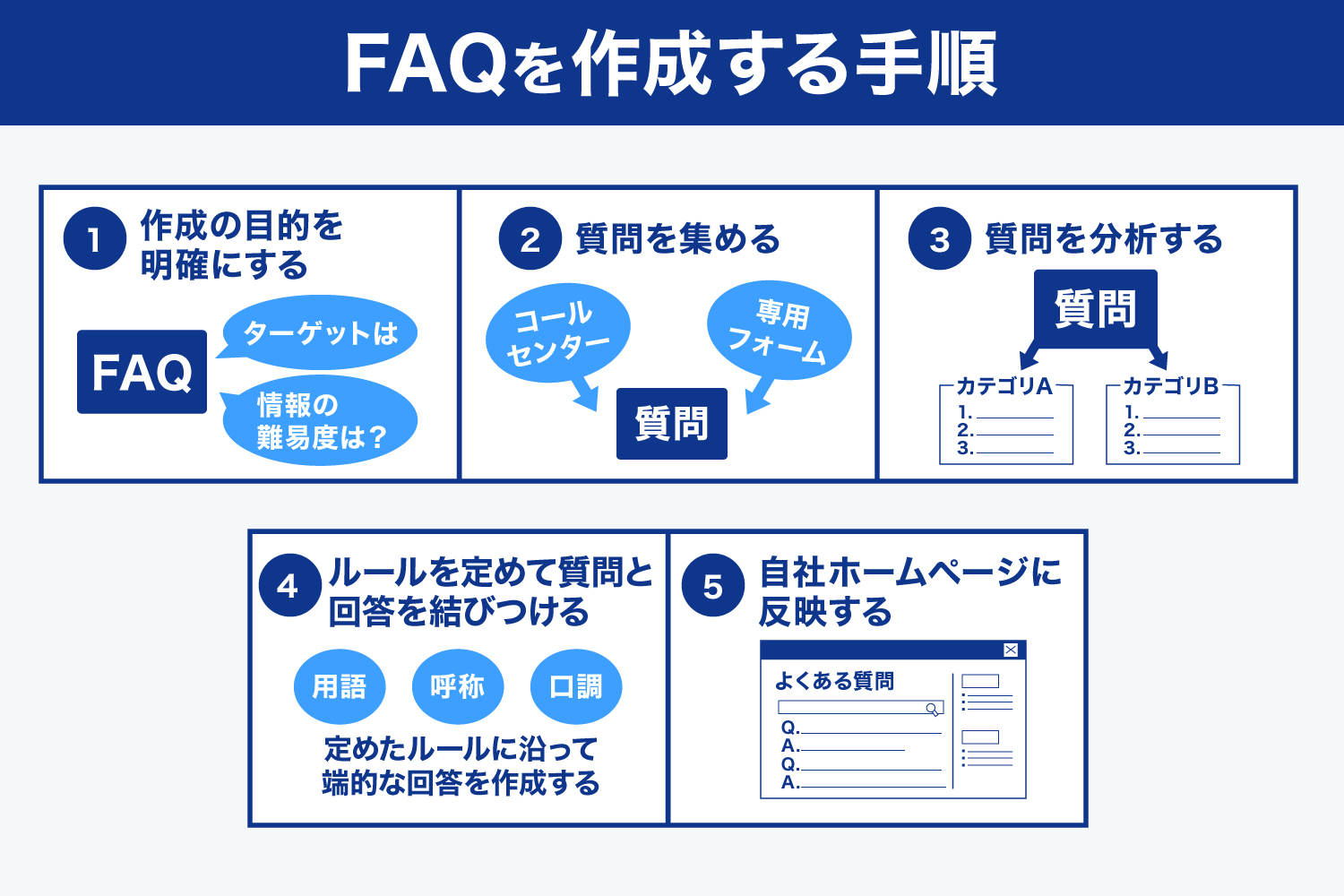 FAQは、ユーザーである顧客や従業員から頻繁に届く質問とその回答を厳選する必要があります。