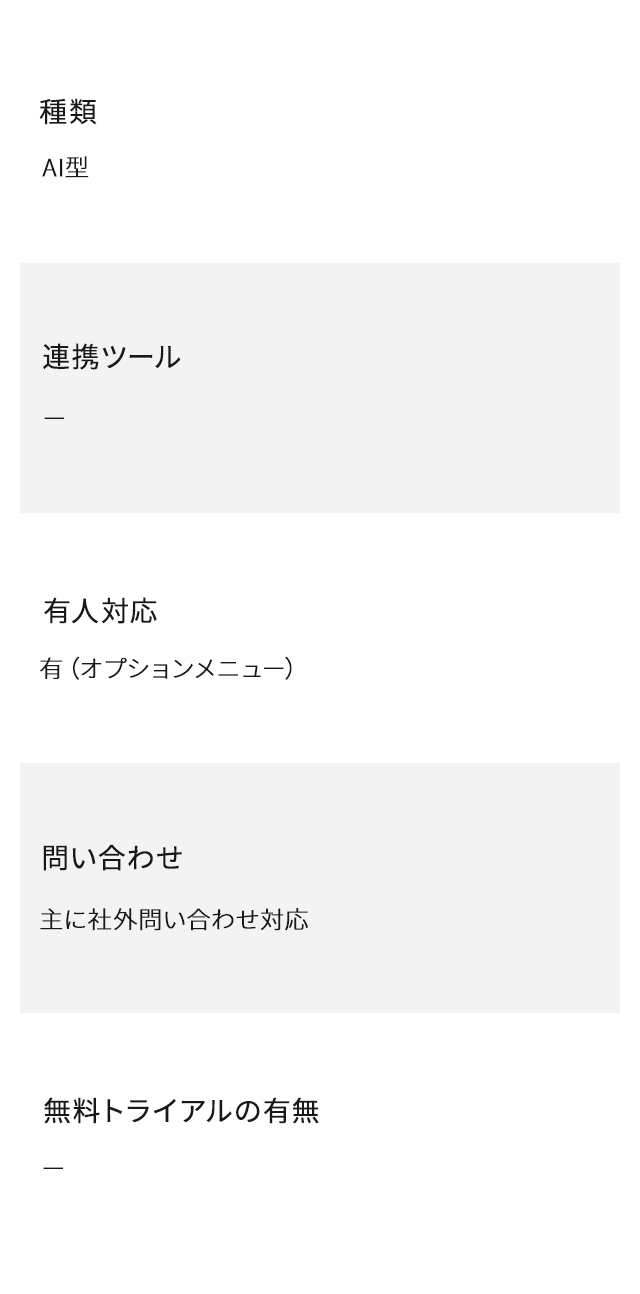 また、AI型の場合でも事前準備として何が必要か、メンテナンスの頻度はなど、やはりサポートの存在は必須です。その際、メール対応しかなく回答が遅いようでは、機会損失につながってしまう可能性もあります。