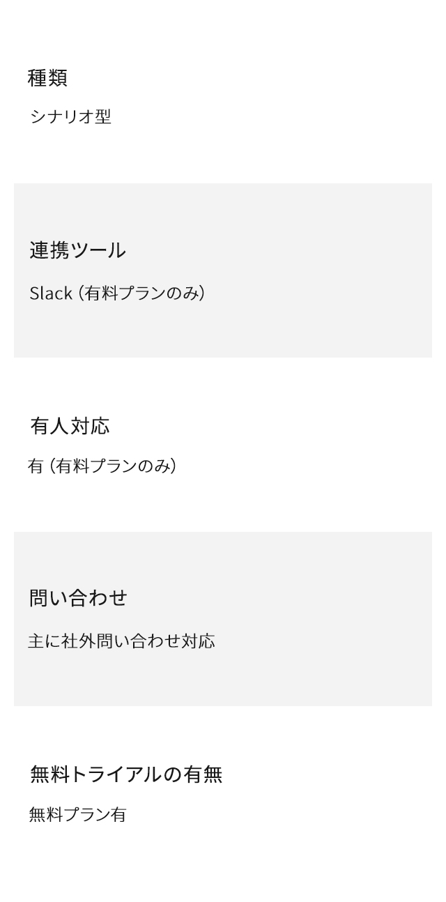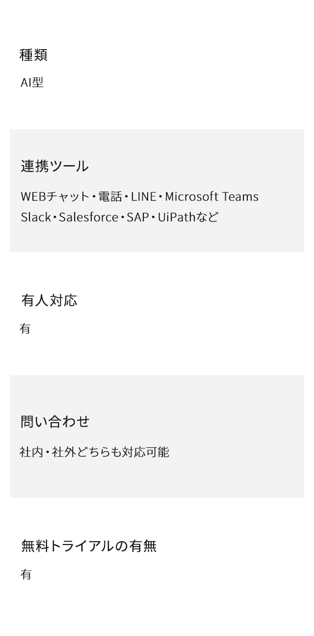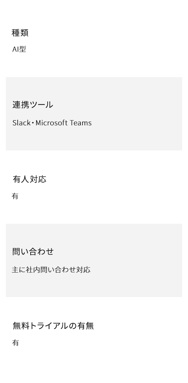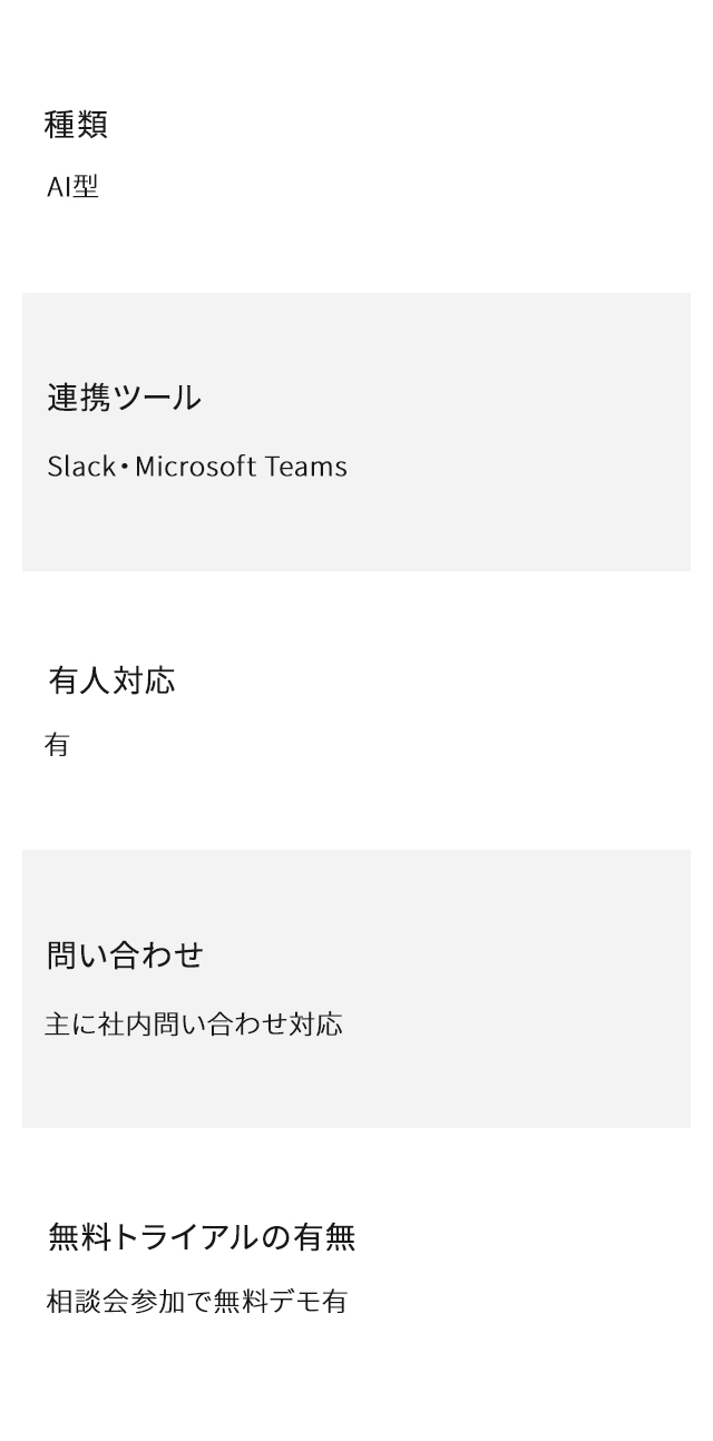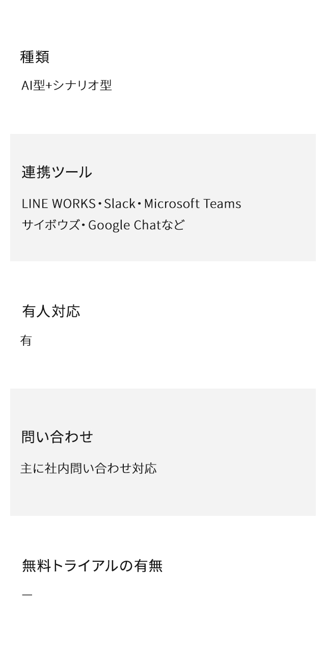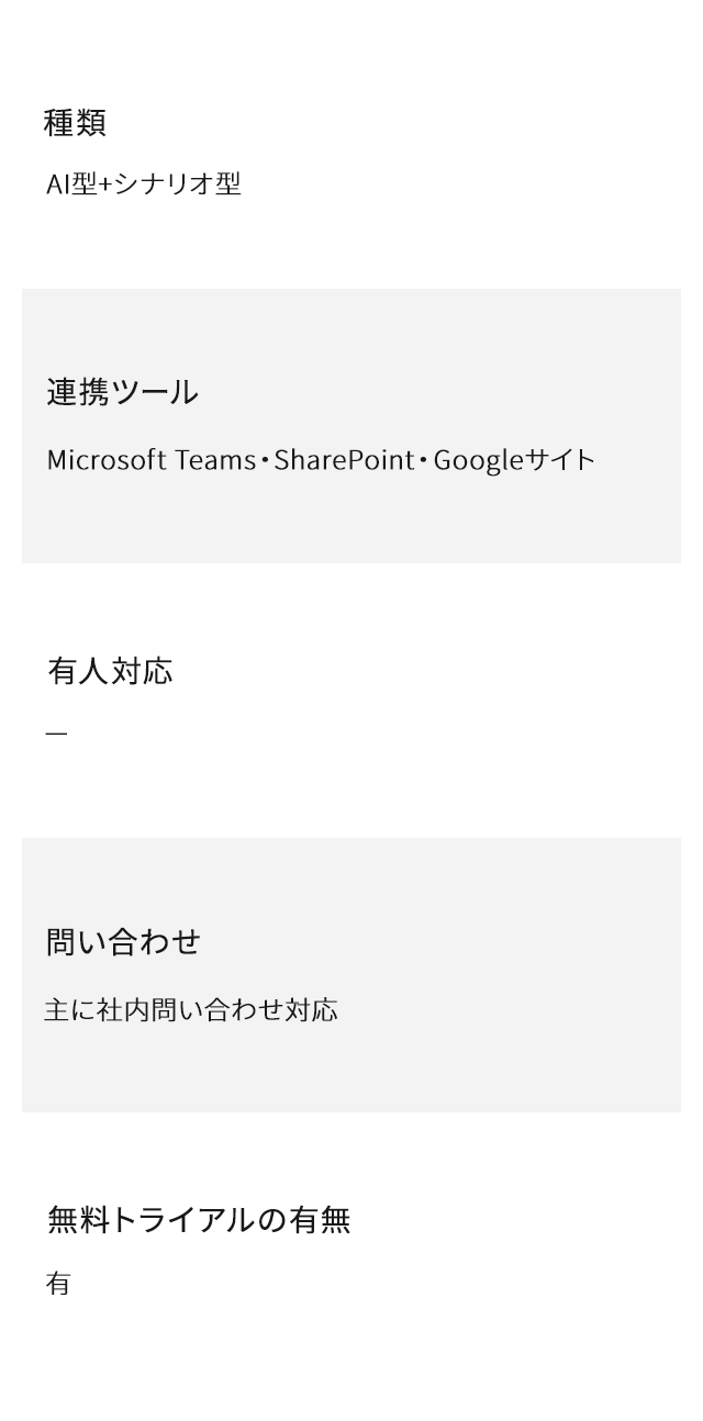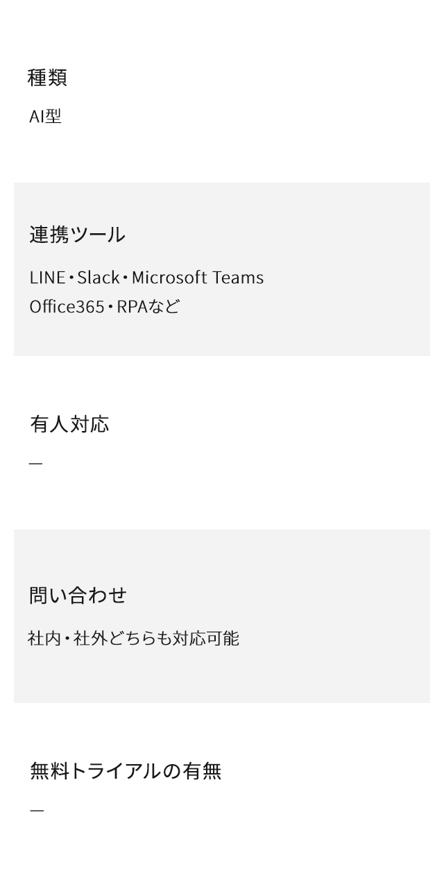 主に社内問い合わせ向けにビジネスチャットやCRMツール、グループウェアと連携可能