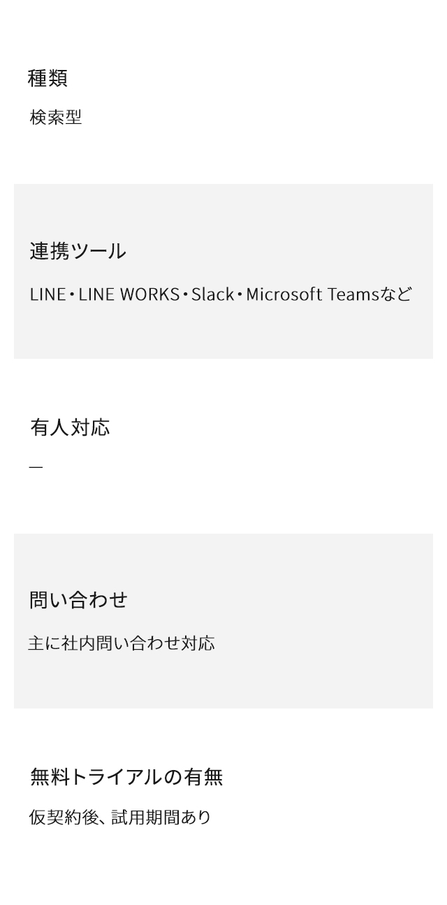 主に社内問い合わせ向けにWordやExcel、PowerPointなどの資料を簡単に探せる検索型チャットツール