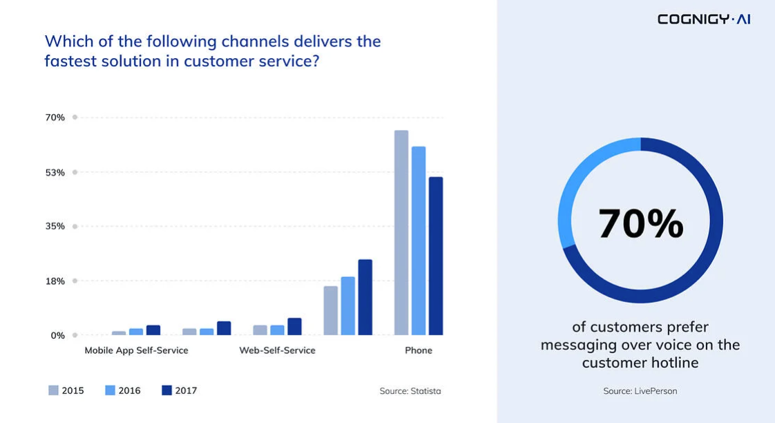 顧客はこのような些細な問い合わせでも、電話やWEBサイトで解決策を探さなければなりませんでした。しかし対話型AIによる自動化では、コールセンターに電話をかける代わりに、ナレッジベースにアクセスして関連する答えを自分で見つけることができます。