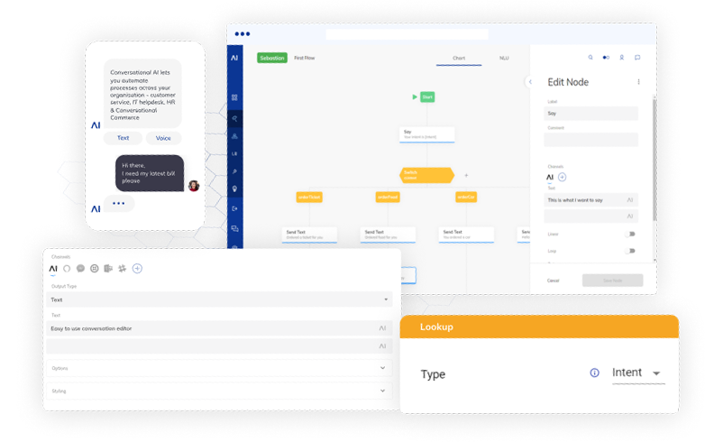 CognigyはGUIで直感的に設定できる優れたエディタ機能を持ち、短期間で拡張性の高い対話型AIを設計・開発可能です。