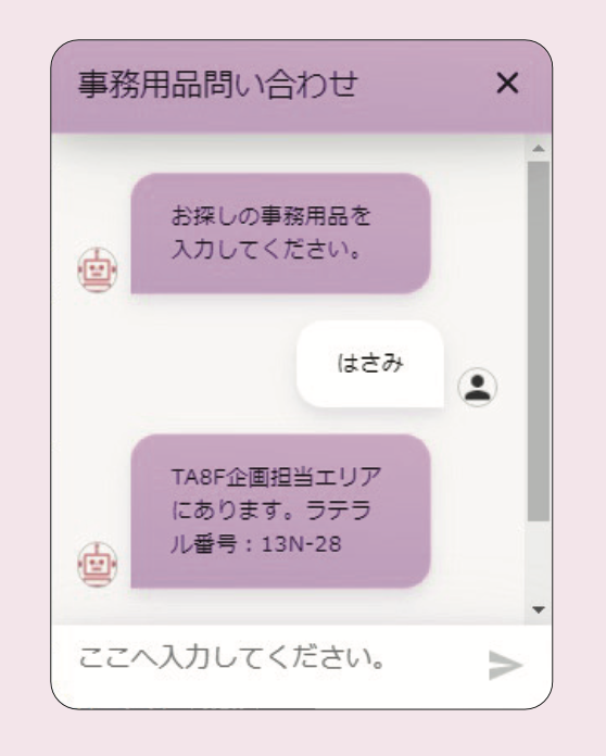 原口様:やりたいことはいろいろありましたが、まず手はじめに小さな業務改善から着手してみようということで、事務用品の在庫管理のチャットボットを作成しました。コロナ禍でテレワークが増えたこともあり、事務用品に関する問い合わせが多くなってい、出社時にその対応で時間を取られることが多くなっていました。山本様:事業部のポータルにはメンバー全員がアクセスできるので、在宅勤務中でも、会社の事務用品の在庫確認や補充ができるようになりました。事務用品に関する問い合わせは「チャットボットに聞いてください」と言えるように(笑)。